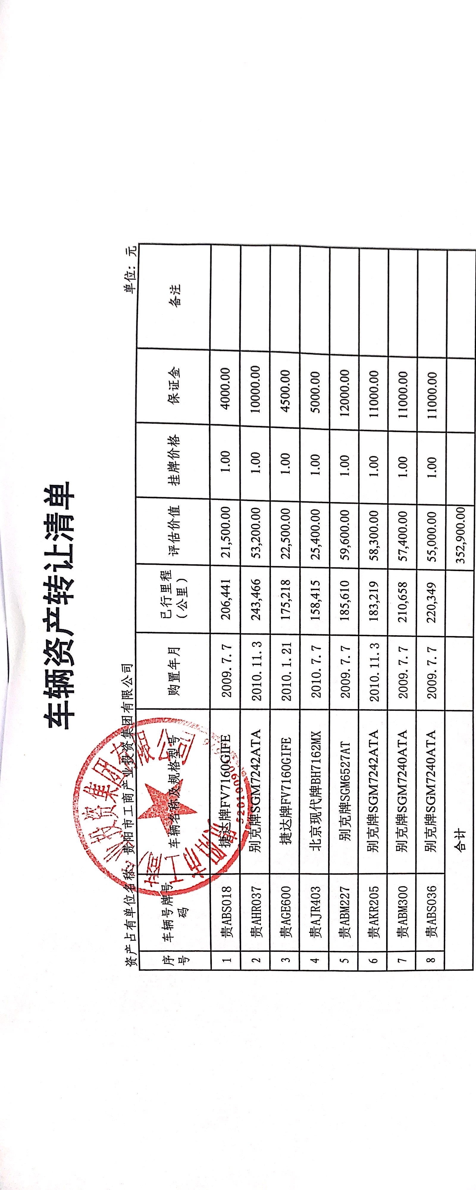 貴陽市工商產(chǎn)業(yè)投資集團(tuán)有限公司處置車輛一批(無底價(jià))