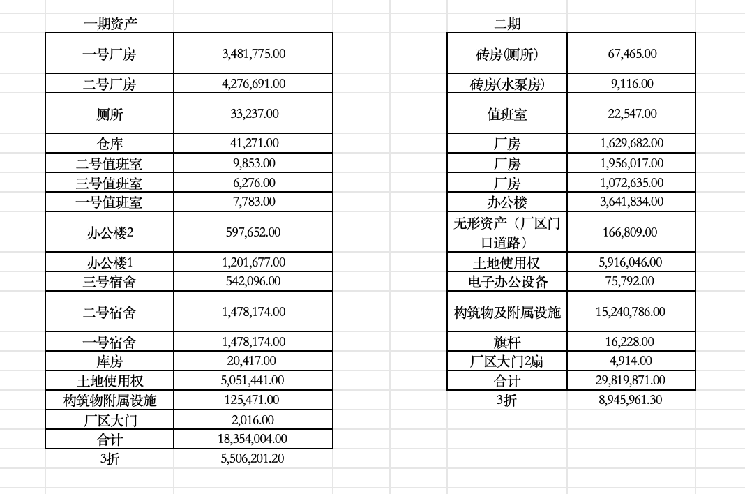 | 資產公告信息 | 資產描述 | 資產類型 | 構筑物及附屬設施(一期) | |||||