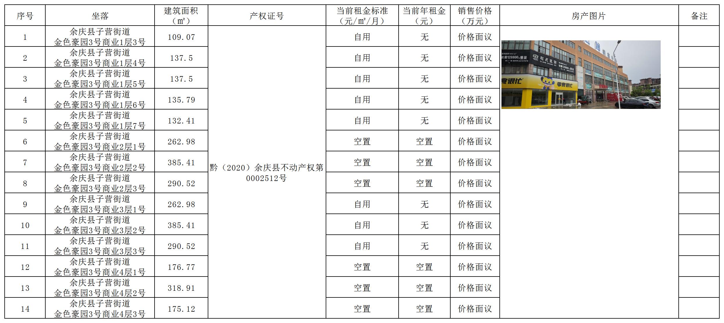項目名稱:(預(yù)披露)七冶貴州置業(yè)余慶有限公司所持余慶縣臨街及社區(qū)商業(yè)用房資產(chǎn)整體出售